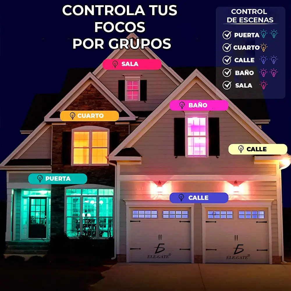 Este foco inteligente con wifi, se conecta a la red y se controla mediante la App del móvil. Es un producto increíble, se puede adaptar con cada integrante de la familia para que puedan escoger su escenario favorito, cuenta con colores diferentes.