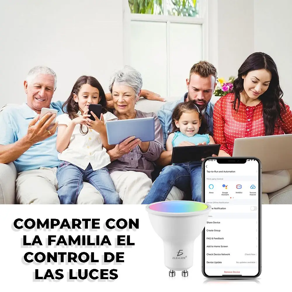 Es un producto increíble, se puede adaptar con cada integrante de la familia para que puedan escoger su escenario favorito, cuenta con colores diferentes. Foco Inteligente De Colores Con Wifi.
