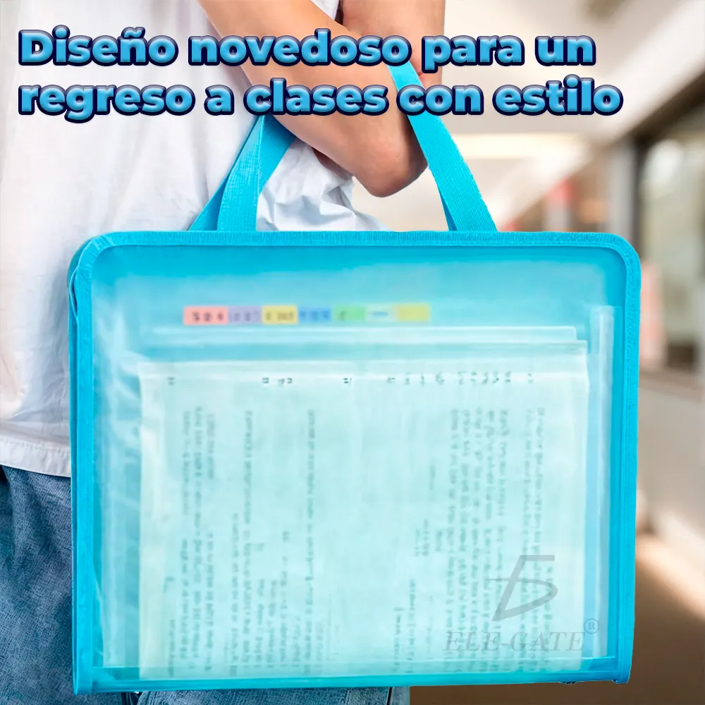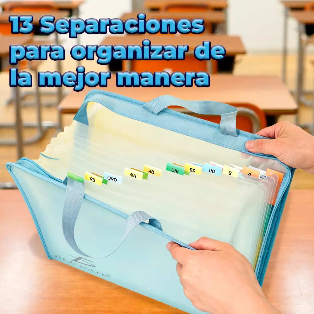 El Folder Tipo Bolsa Organizador con 13 Separadores y cierre es la solución perfecta para mantener tus documentos importantes seguros y organizados. Con un diseño moderno y colores de moda, es ideal para llevar a cualquier parte, combinando estilo y funcionalidad.