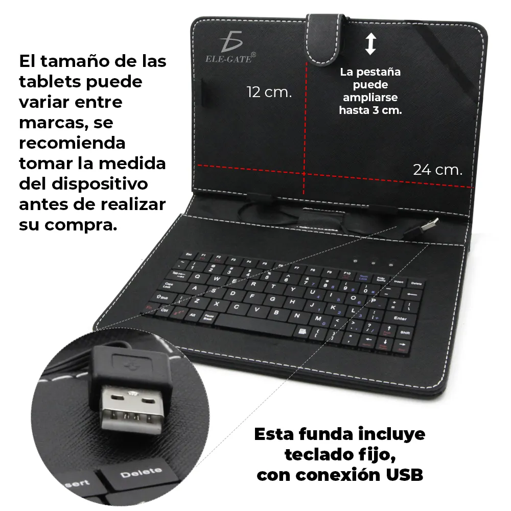 Funcionalidad y elegancia, hacen de ella un producto diferente cuyo diseño garantiza una larga vida a tu tableta, Su diseño CON TECLADO.