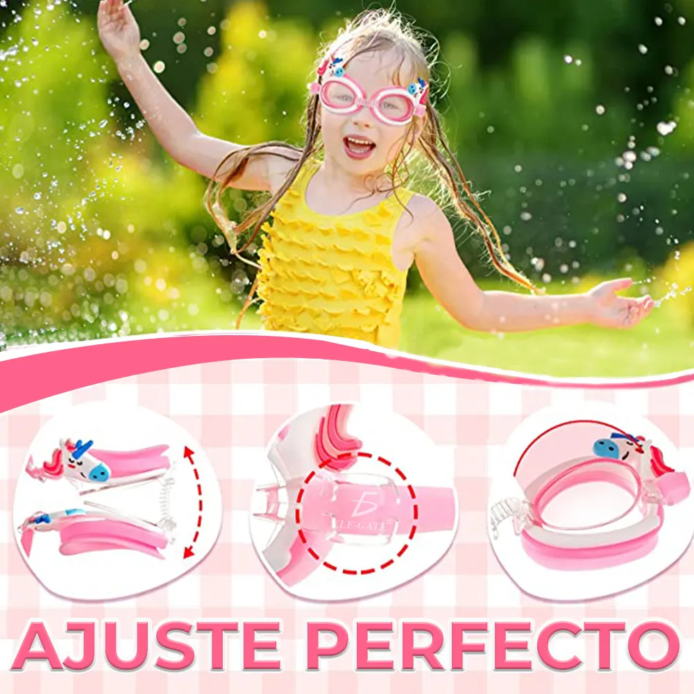 Gafas de natación de visión clara, para niños y niñas, antivaho y protección UV.