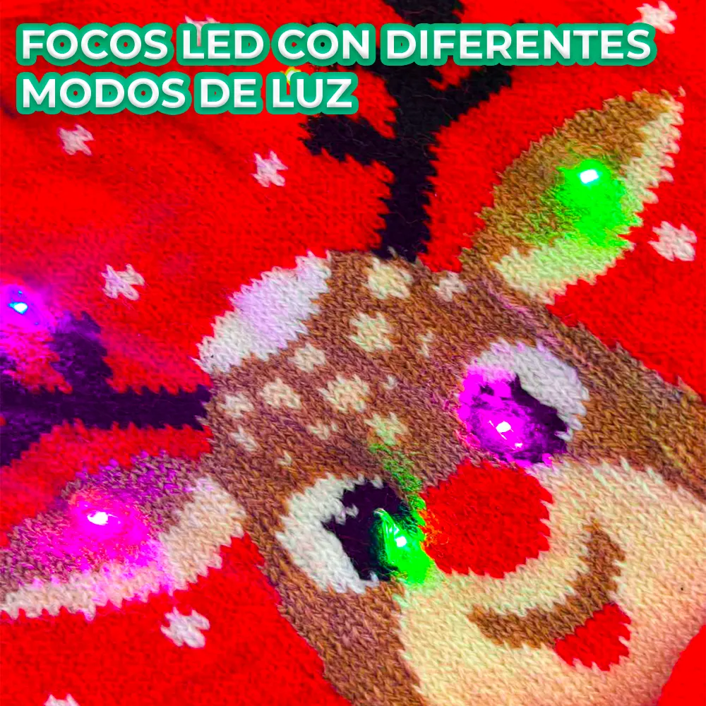 💡 Luces LED RGB integradas: Ilumina tu gorro con tres secuencias de luz diferentes para un efecto festivo único.