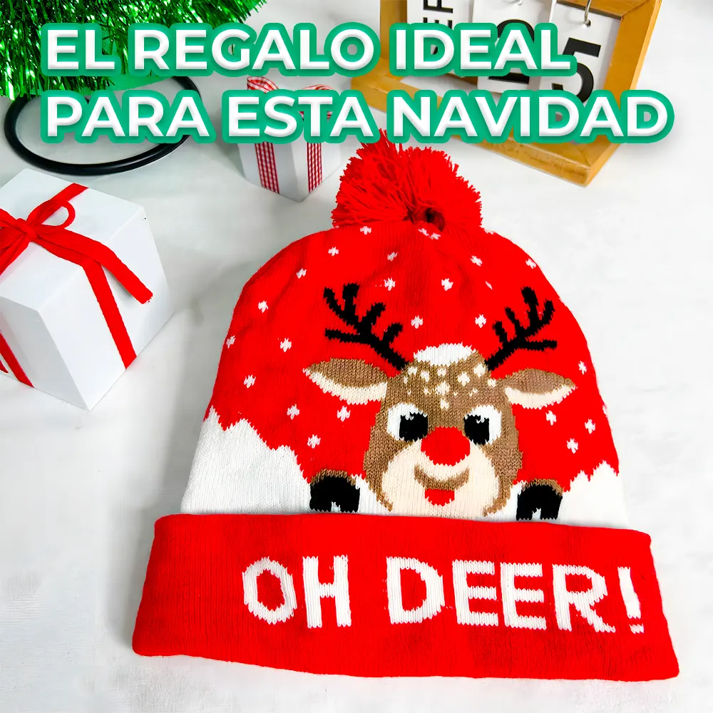 Ilumina tus fiestas con estilo con este gorro navideño con luces LED. Diseñado para destacar en cada reunión y mantenerte cómodo en todo momento gracias a sus fibras térmicas de alta calidad.