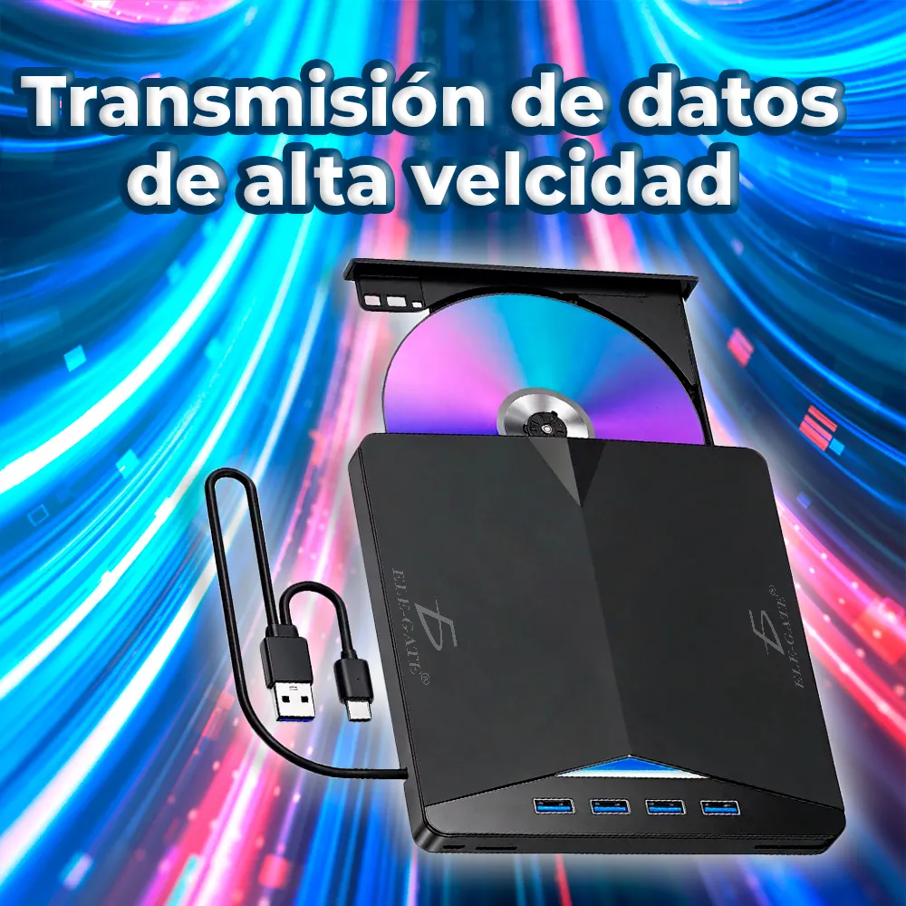 USB 3.0 de alta velocidad y Tipo-C Este es un lector de CD y DVD externo con todas las funciones de escritor regrabador grabador ripper. Mayor velocidad de transmisión significa mayor estabilidad. Velocidad de lectura (CD-ROM 24X, CD-R 24X, CD-RW 24X, DVD-ROM 8X, DVD-R 8X, DVD-RW 8X). Velocidad de escritura (CD-R 24X, CD-RW 16X, DVD-R 8X, DVD-RW 6X).