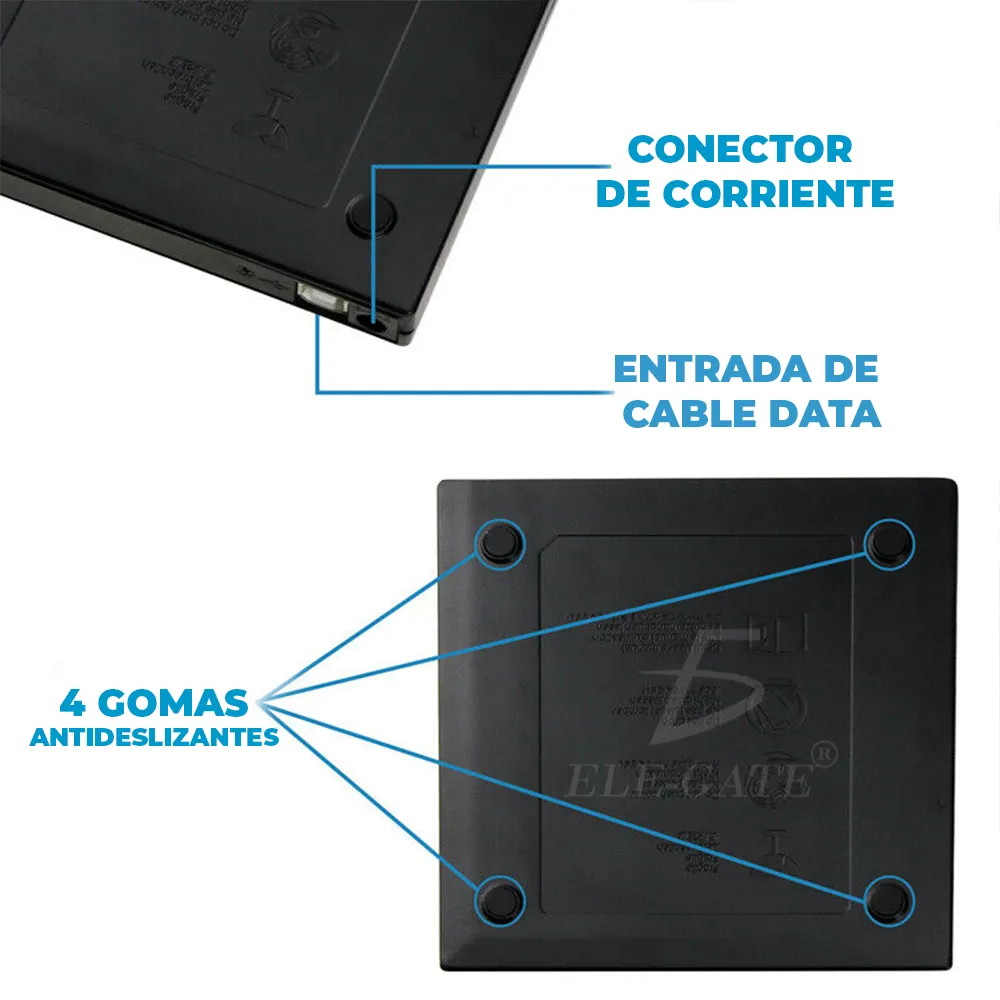 – En la oficina o en la carretera, esta unidad portátil, funciona cómodamente a través del puerto USB de tu ordenador portátil.