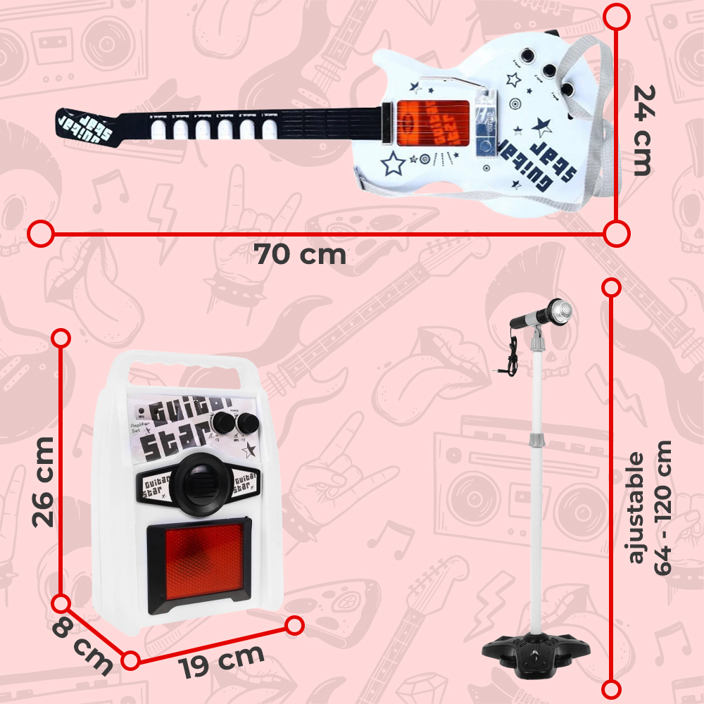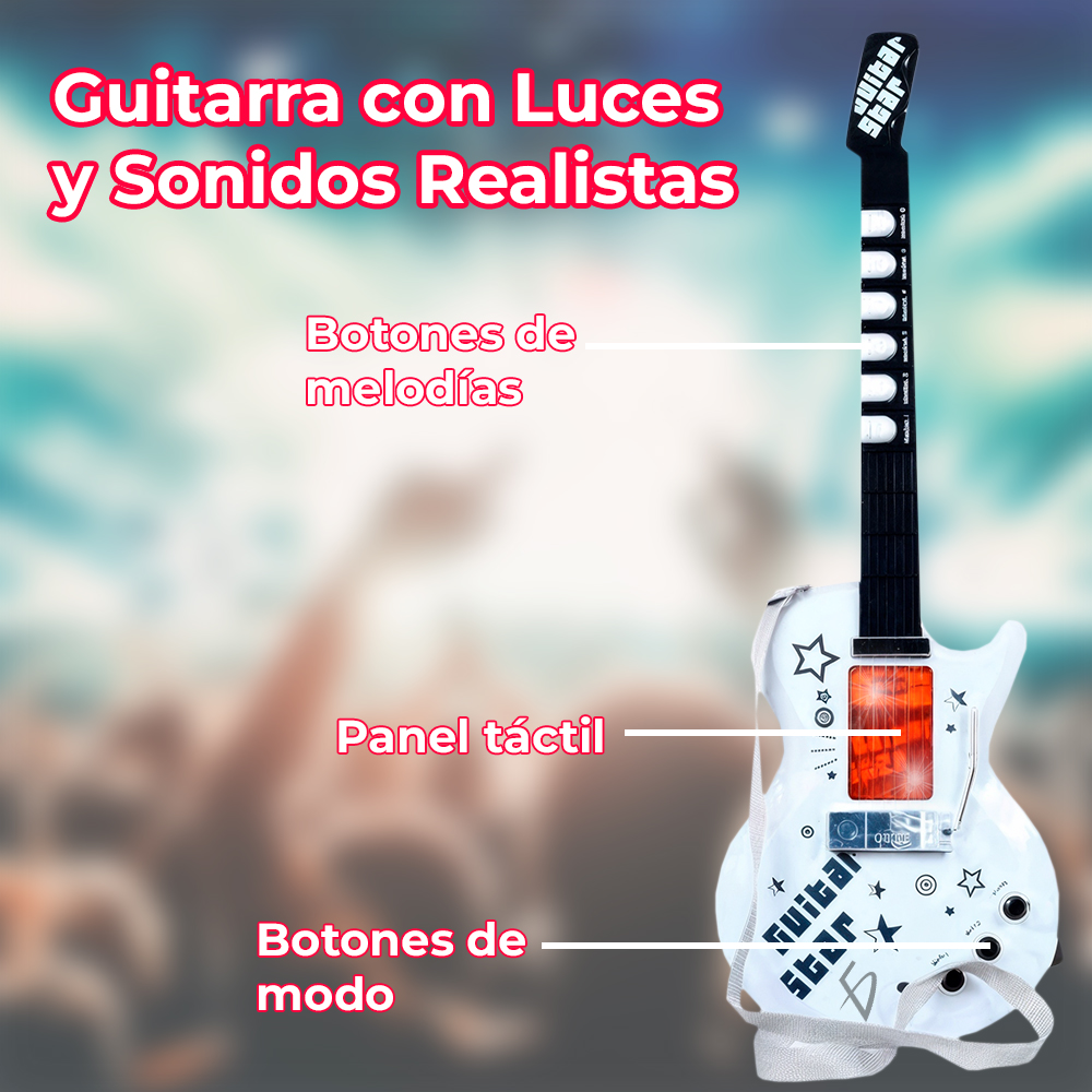 Haz que los pequeños se sientan como verdaderas estrellas de rock con esta guitarra eléctrica de juguete de 70 cm, ideal para conciertos imaginarios, shows en casa y horas de diversión musical.