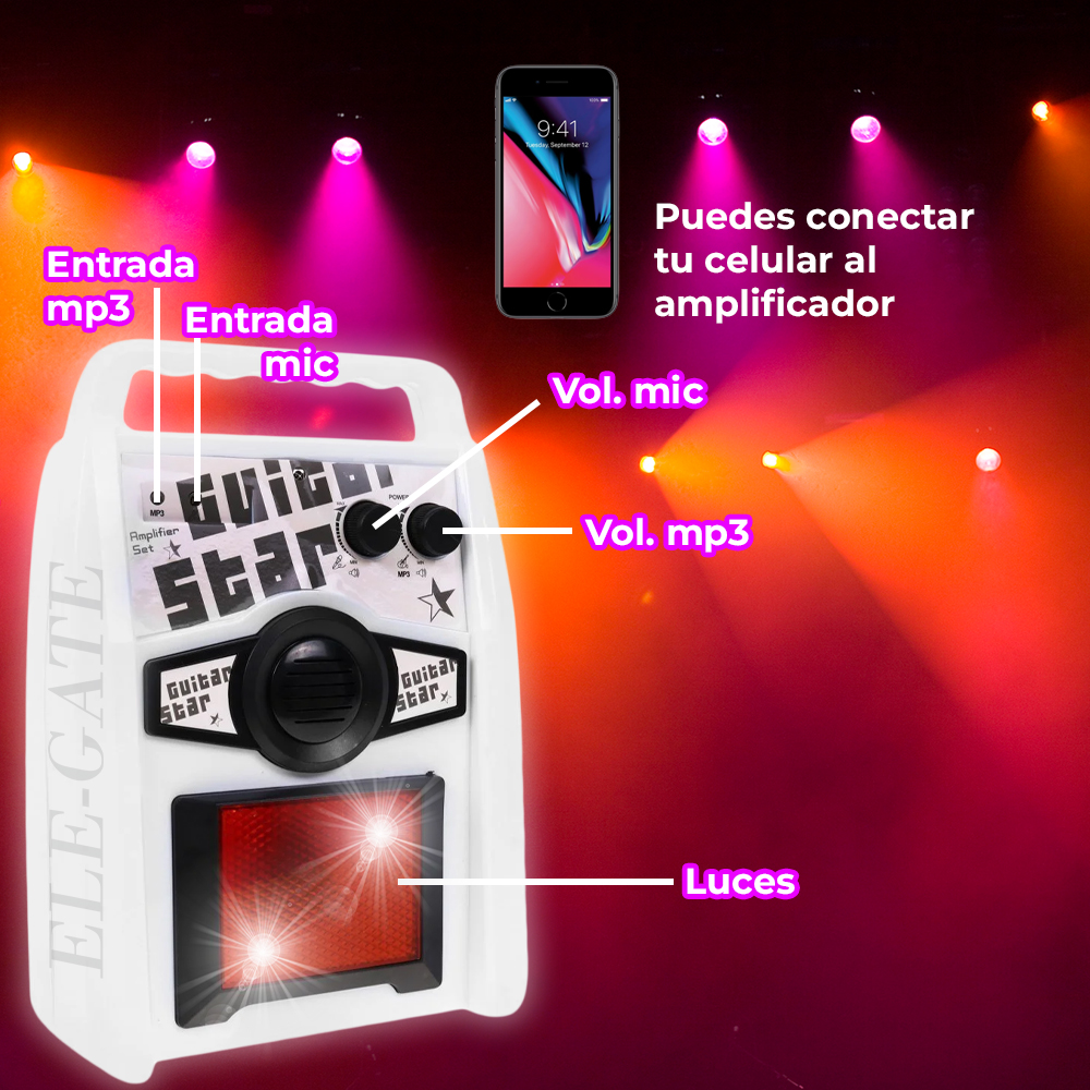 Amplificador incluido, perfecto para que los niños toquen y canten como en un verdadero escenario.