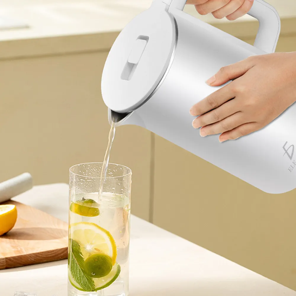 Material de grado alimenticio El hervidor eléctrico está hecho de polipropileno de grado alimenticio y acero inoxidable, sin BPA, sin sustancias nocivas. Lo que hace que nuestro hervidor de té sea más seguro de usar y seguir manteniendo el agua caliente. Construido con doble pared, aislamiento térmico de doble capa y antiquemaduras, la temperatura exterior del hervidor de agua no superará los 45 ℃.