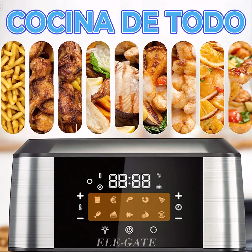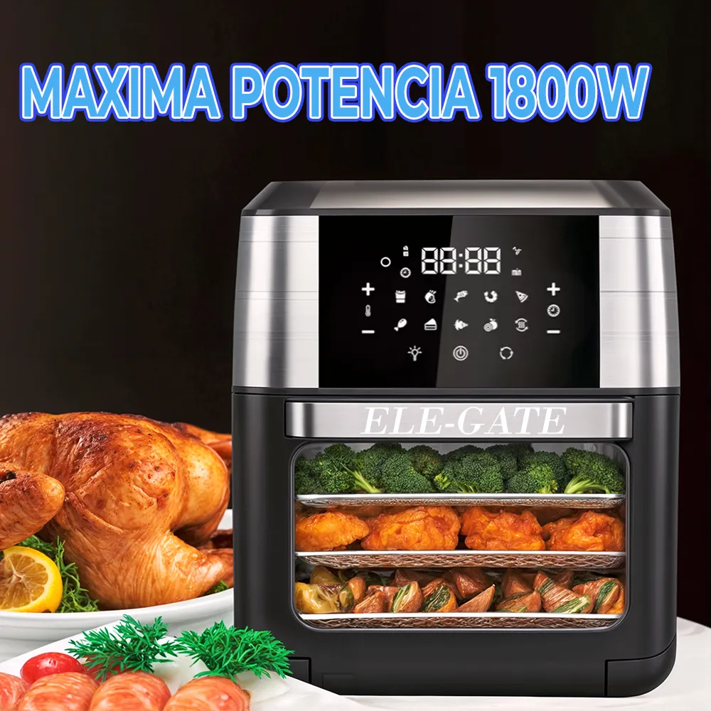 Descubre la manera más fácil y deliciosa de cocinar con el Horno Freidora de Aire 10 en 1 de 1800W, que te permite preparar una gran variedad de platillos con la cocción ideal en todo momento. Gracias a sus funciones prestablecidas, incluso los principiantes pueden cocinar como un chef profesional. Además, su gran adaptabilidad permite programarlo de forma manual para lograr la cocción perfecta según tus preferencias. Ya sea que quieras freír, asar, hornear o tostar, este equipo tiene todo lo que necesitas para disfrutar de tus platillos favoritos de manera rápida, saludable y deliciosa. ¡Una herramienta imprescindible para tu cocina!