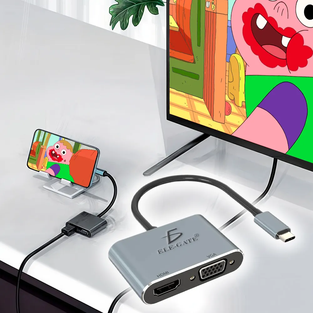 Hub Adaptador Usb C A Hdmi Vga Usb3.0 4k. Gracias a su chip y alta tecnología siempre tendrás calidad en t video sin perder velocidad o calidad.
