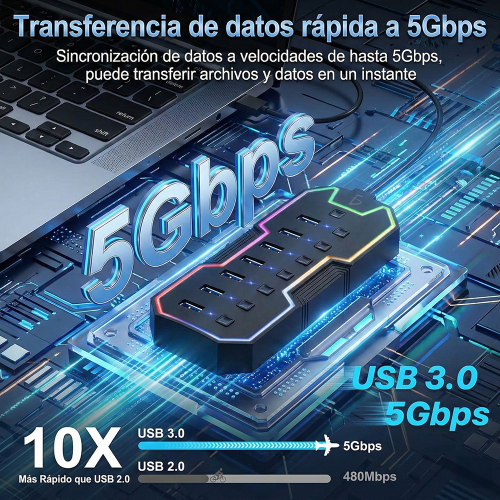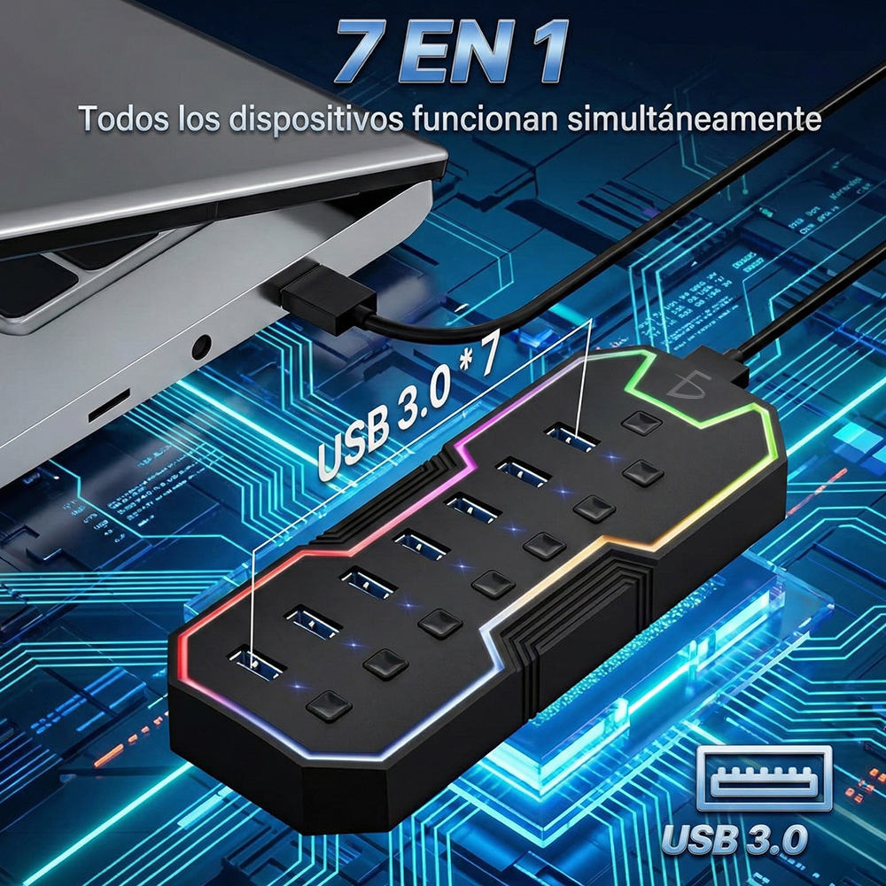 🚀 Expansión de 7 Puertos USB 3.0