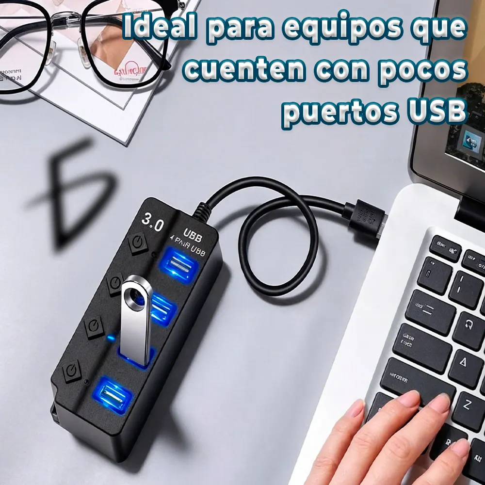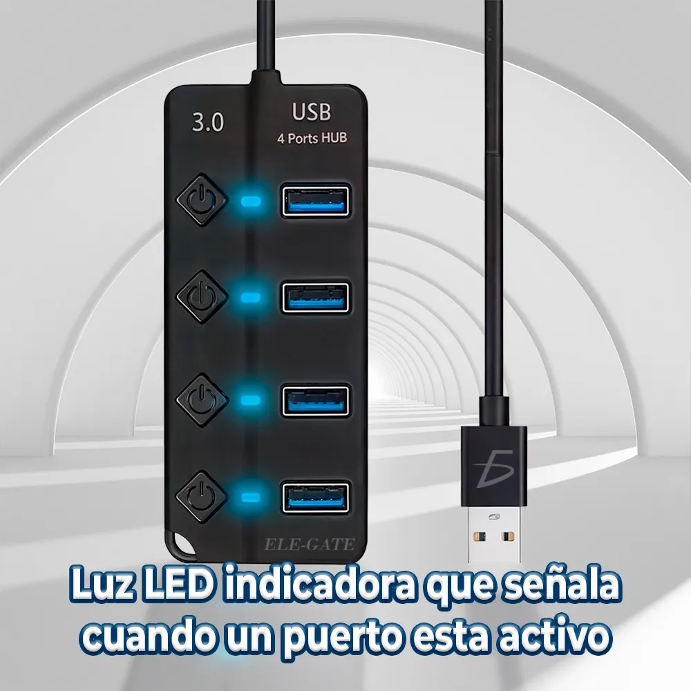 El Hub USB 3.0 de 4 Puertos es la solución perfecta para quienes necesitan aumentar la cantidad de puertos disponibles sin sacrificar velocidad o control. Ideal para profesionales y usuarios que necesitan una gestión sencilla y rápida de sus dispositivos conectados.