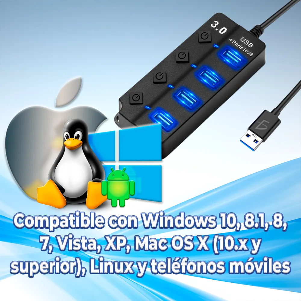 - Plug & Play: No requiere instalación de software o drivers, simplemente conecta el hub y comienza a usarlo de inmediato.