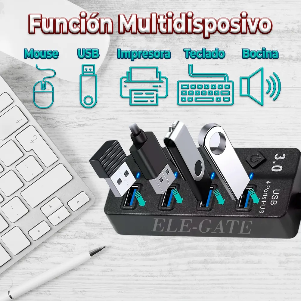 - Compatibilidad Universal: Funciona con todos los dispositivos que tengan puertos USB, incluyendo laptops, PCs, consolas de videojuegos y más.