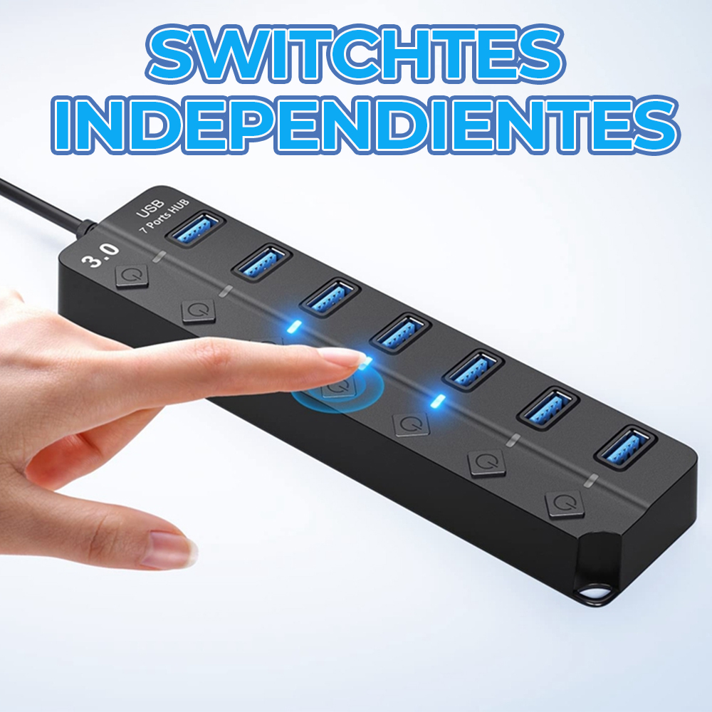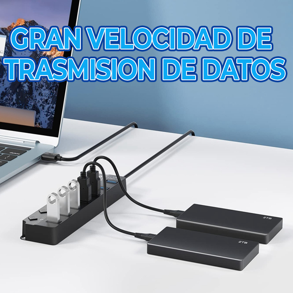7 puertos USB 3.0 de alta velocidad: amplía un solo puerto a siete; transfiere datos hasta 5 Gbps (teórico) para memorias USB, teclados, ratones, impresoras y más.