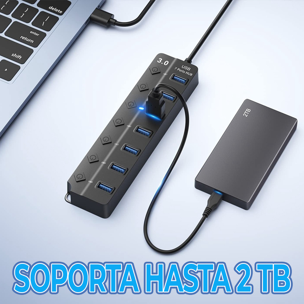 7 puertos USB 3.0 de alta velocidad: amplía un solo puerto a siete; transfiere datos hasta 5 Gbps (teórico) para memorias USB, teclados, ratones, impresoras y más.