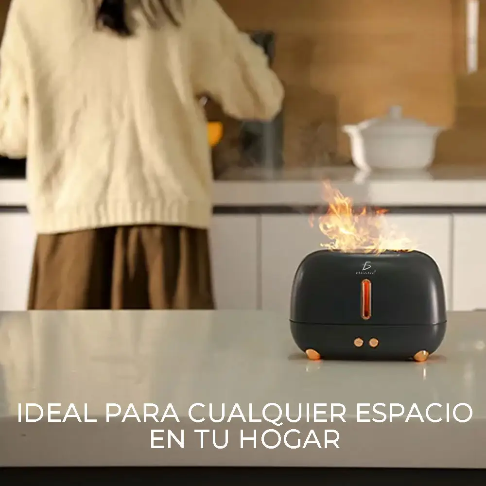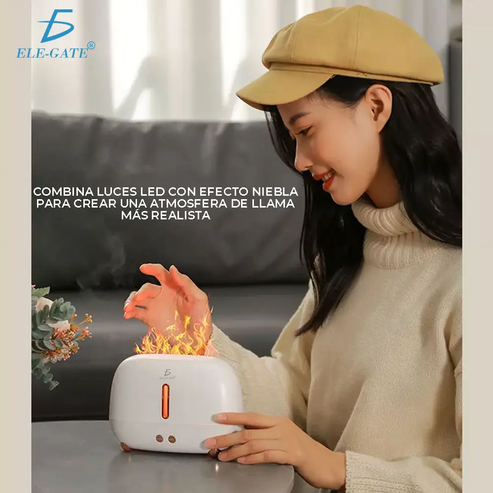 el difusor de aroma de fuego ultra silencioso de 30 dB te ayuda a dormir fácilmente por la noche y mejorar la calidad del sueño. Con chip inteligente integrado,nuestro difusor de aire dejará de funcionar automáticamente cuando haya falta de agua, por lo que es muy seguro y fiable.
