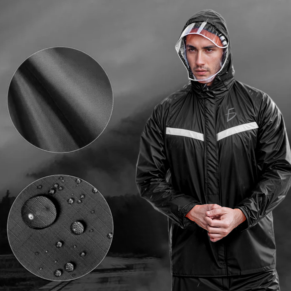 Protección total contra la lluvia en tus recorridos en moto o bicicleta. Su diseño incluye chaqueta con visera y pantalón, elaborados en material resistente e impermeable. Los botones reforzados aseguran mayor durabilidad y ajuste firme.