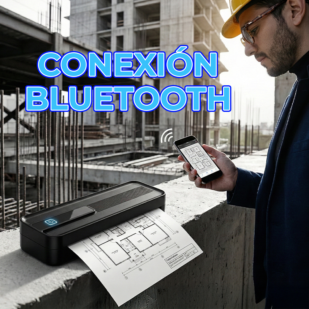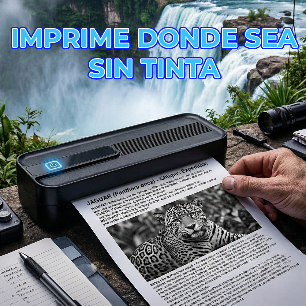 Esta impresora térmica portátil e inalámbrica está diseñada para imprimir en cualquier lugar. Cuenta con conectividad Bluetooth y tecnología de impresión térmica sin tinta, compatible con tamaño carta A4, ideal para documentos, contratos, apuntes y más.