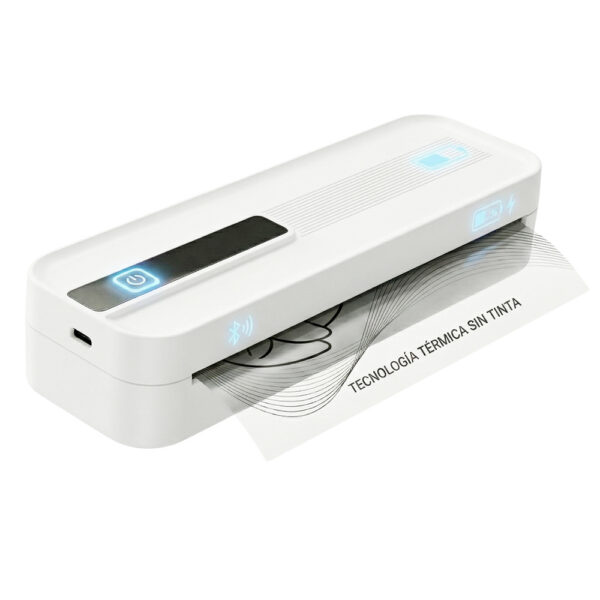 Esta impresora térmica portátil e inalámbrica está diseñada para imprimir en cualquier lugar. Cuenta con conectividad Bluetooth y tecnología de impresión térmica sin tinta, compatible con tamaño carta A4, ideal para documentos, contratos, apuntes y más.
