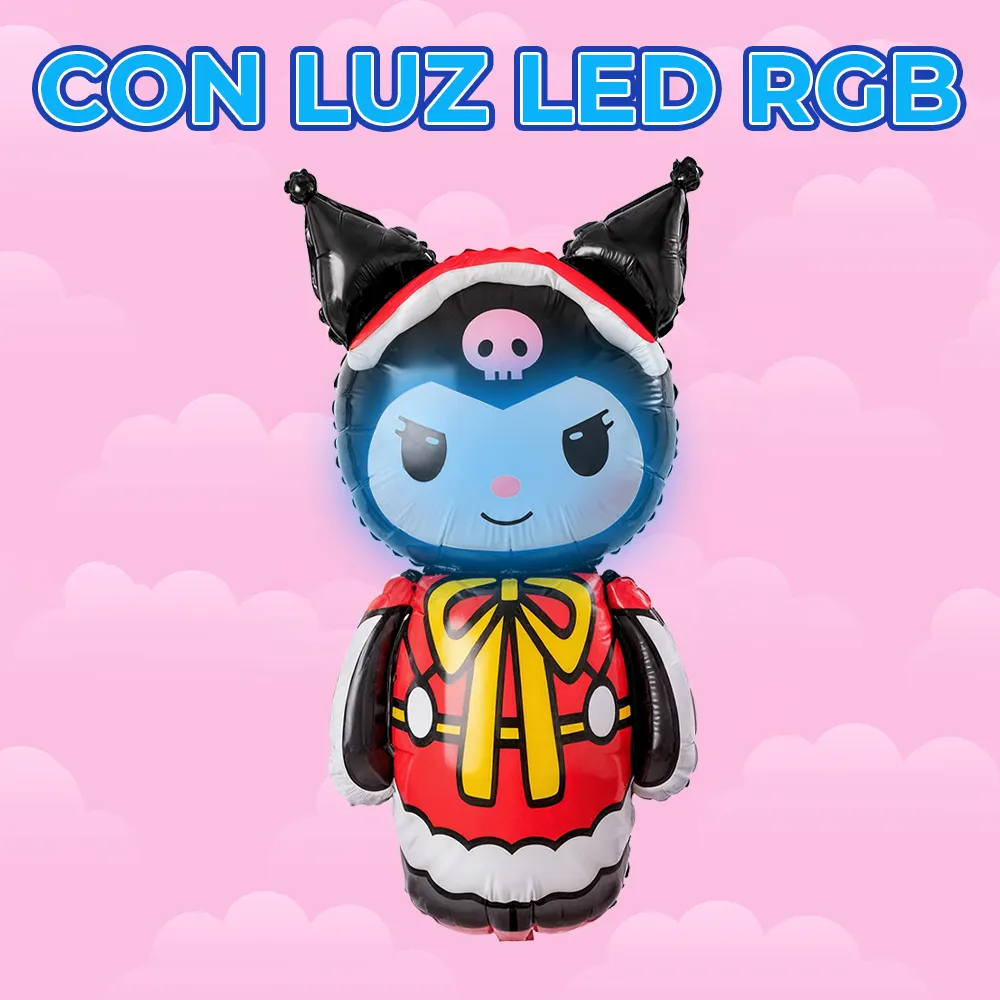 Inflable decorativo de Kuromi con luz LED RGB y válvula de inflado rápido. Incluye base para agua o arena que brinda estabilidad. Ideal para decorar habitaciones infantiles con ternura y estilo kawaii.