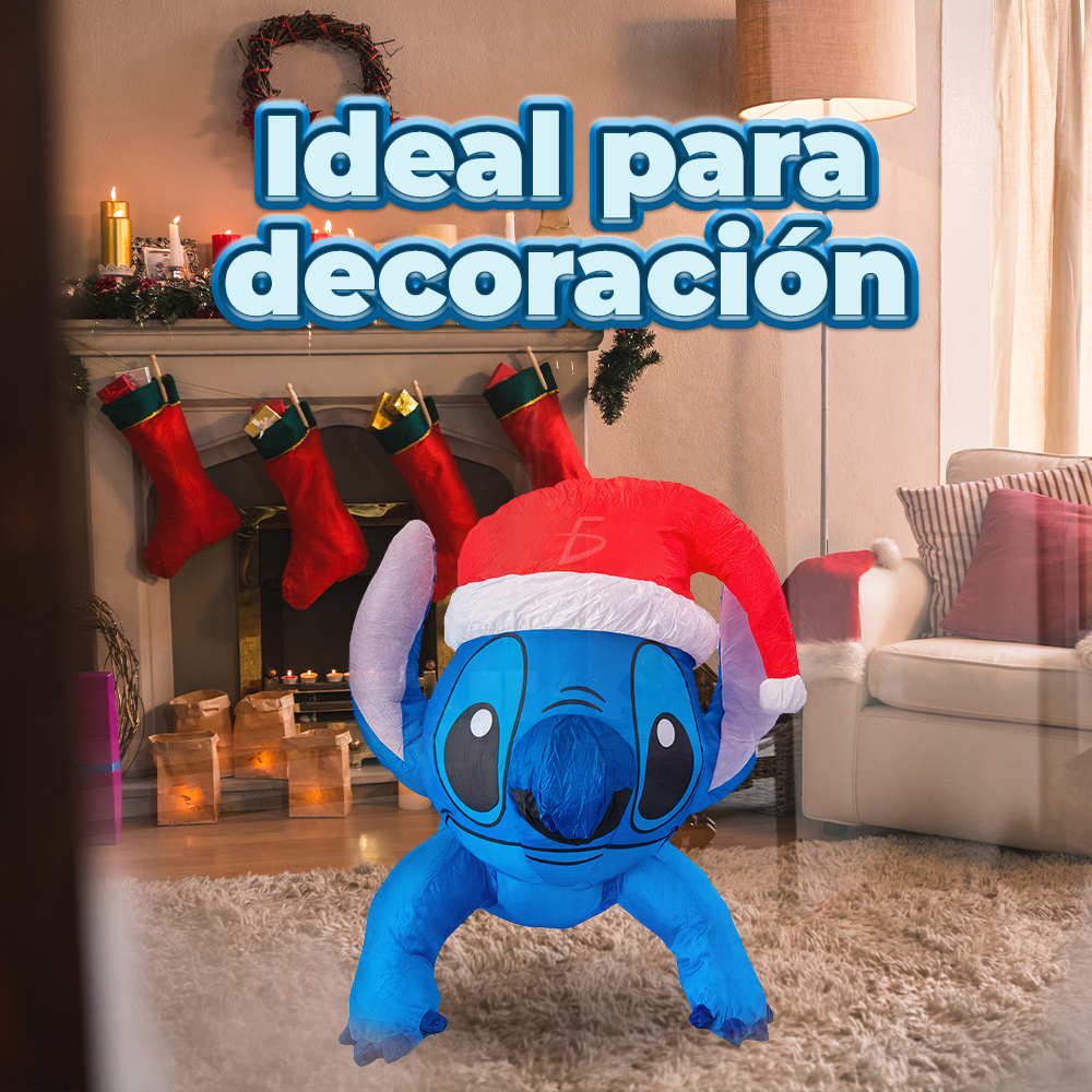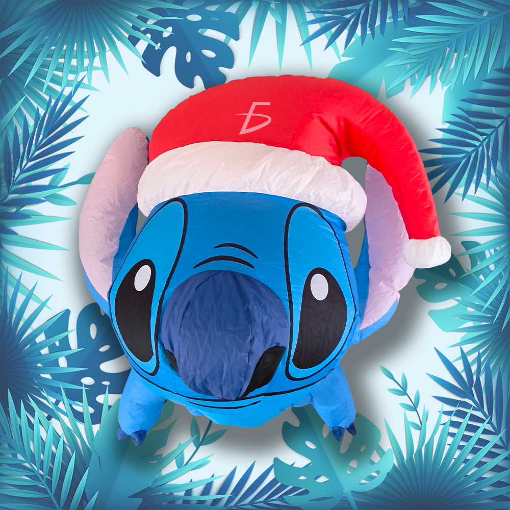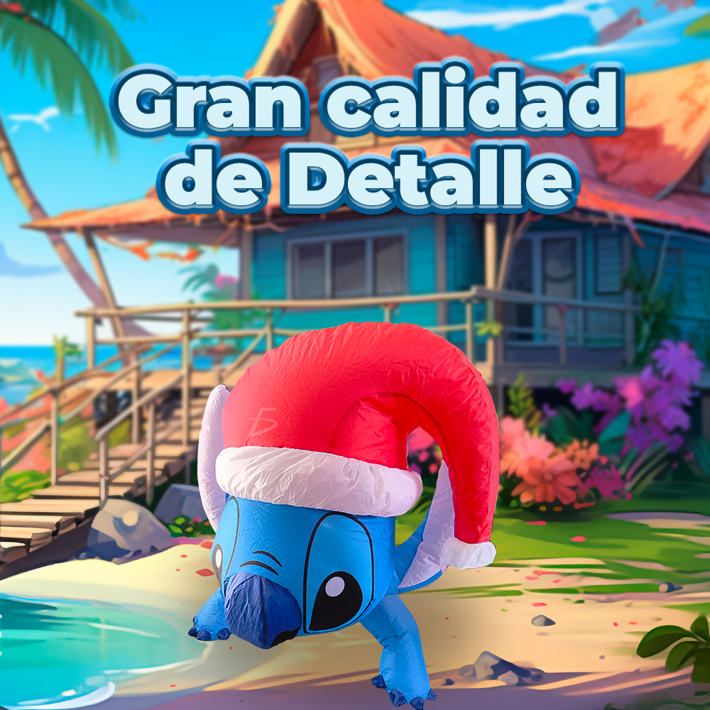 Llena tus celebraciones de color y ternura con el Inflable de Stitch con Gorro Navideño, el complemento perfecto para destacar esta Navidad. ✨