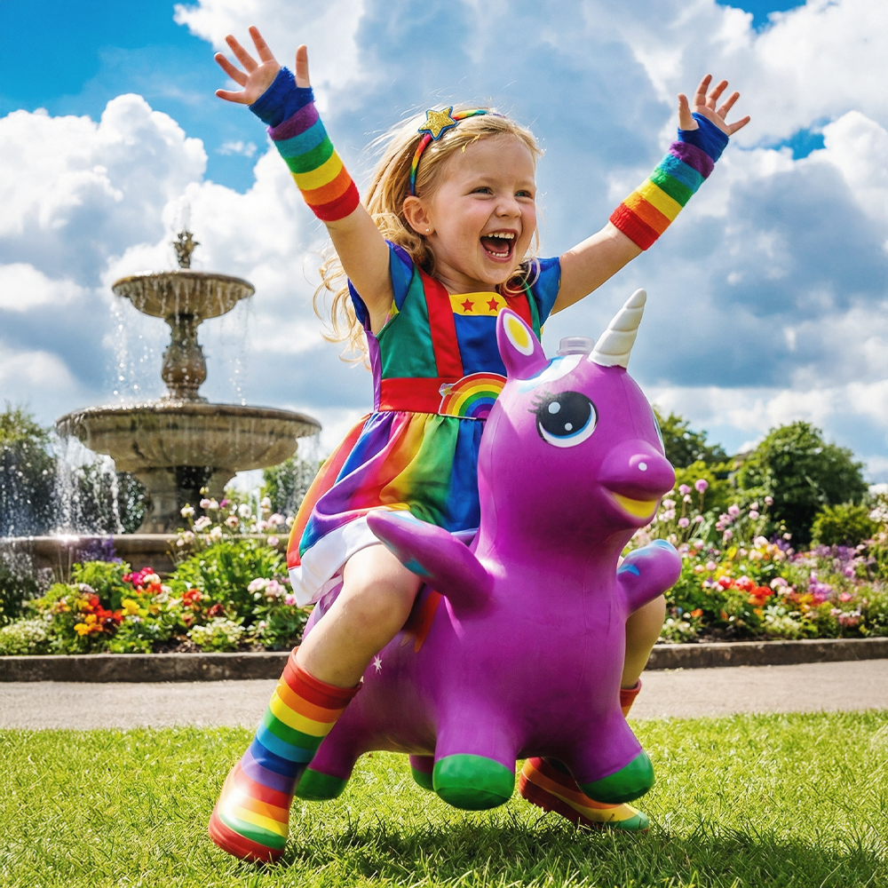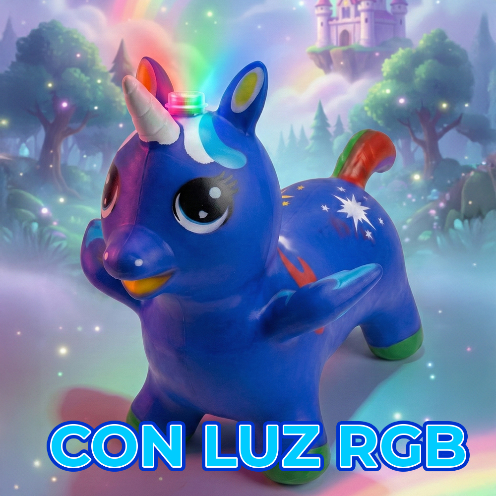 ¡Diversión, color y magia en un solo juguete! Este unicornio inflable montable con luz RGB es el compañero perfecto para que los niños jueguen, salten y desarrollen su imaginación tanto en interiores como en exteriores.