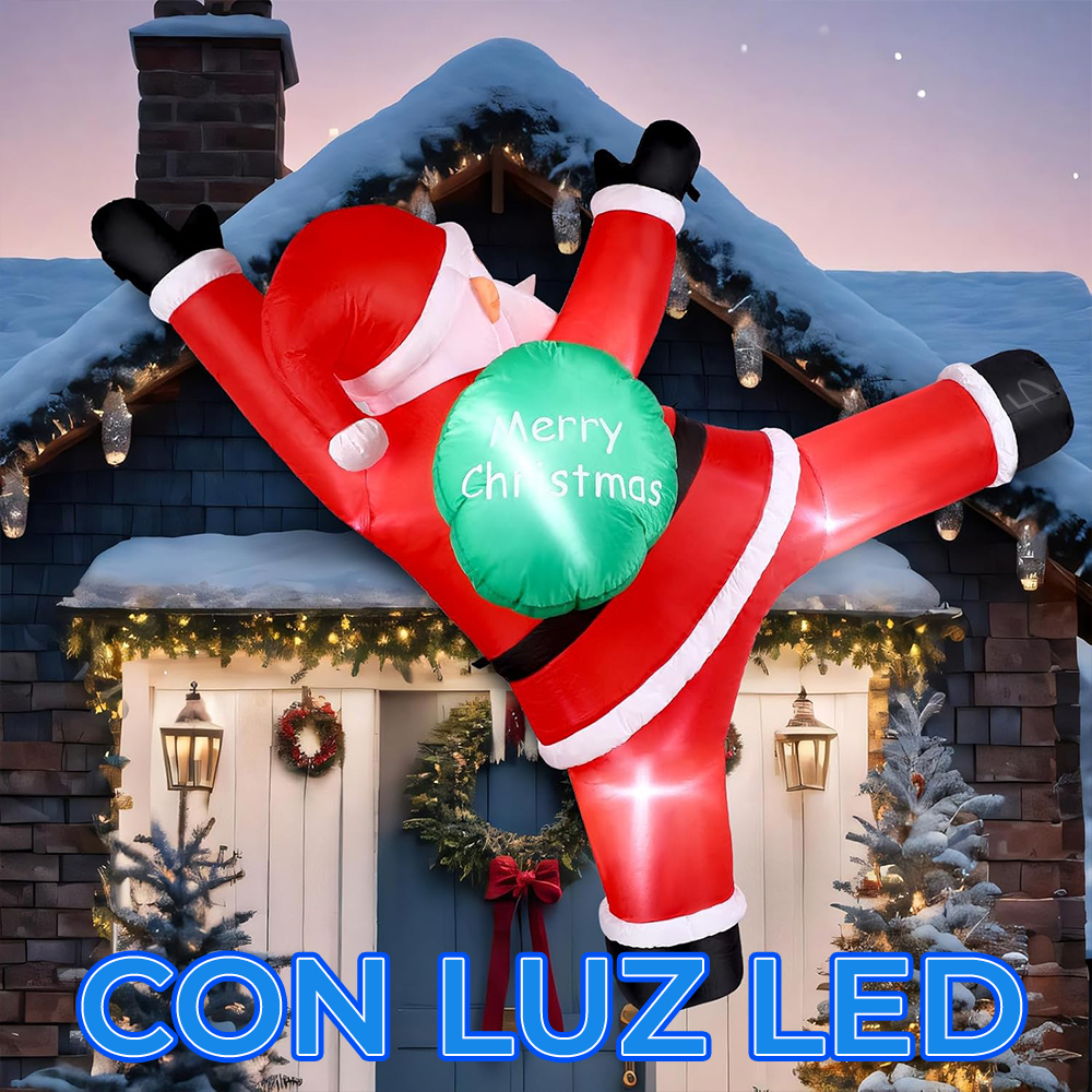 Crea una escena mágica y divertida esta temporada con el Inflable Navideño de Santa Claus Escalando con su Bolsa de Regalos.