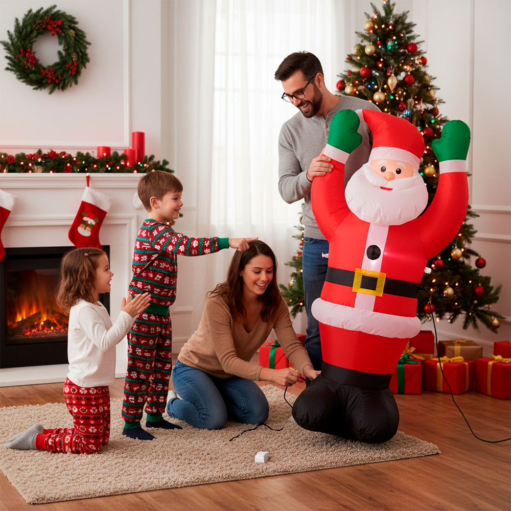 Crea una escena mágica y divertida esta temporada con el Inflable Navideño de Santa Claus Celebrando.