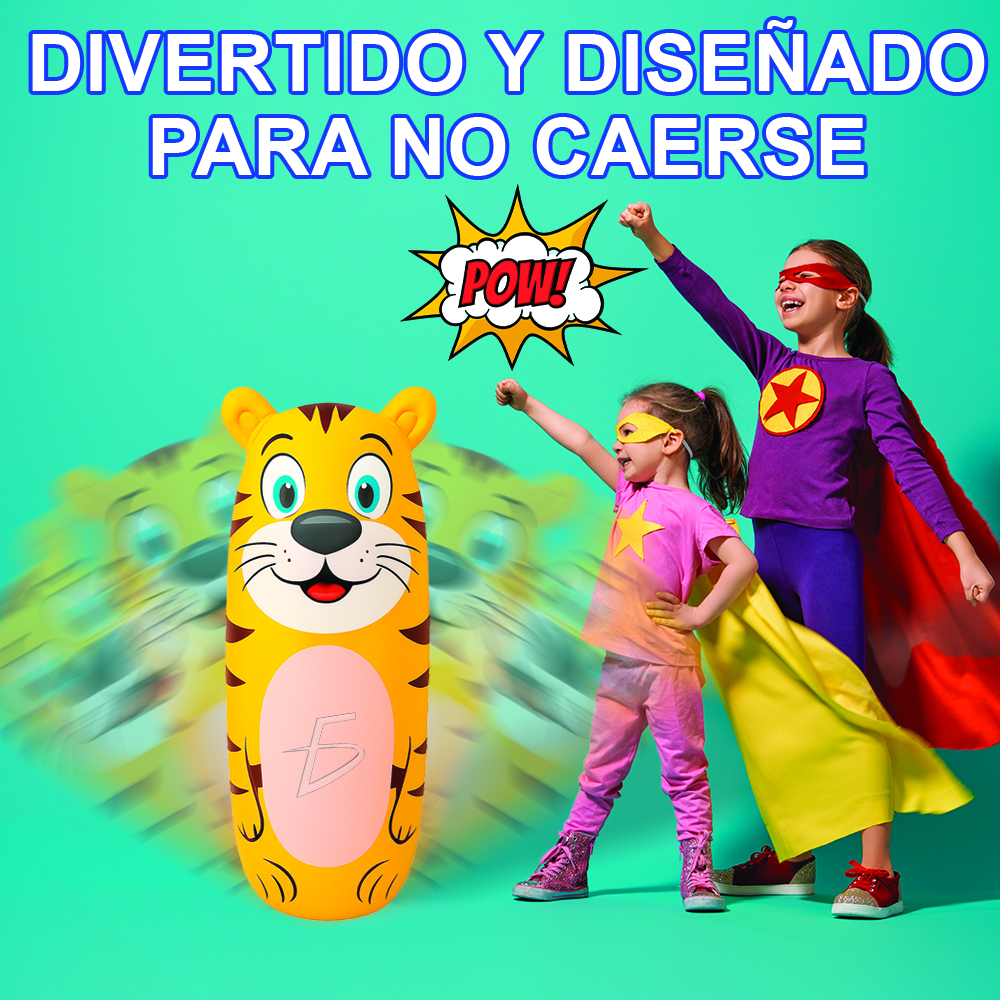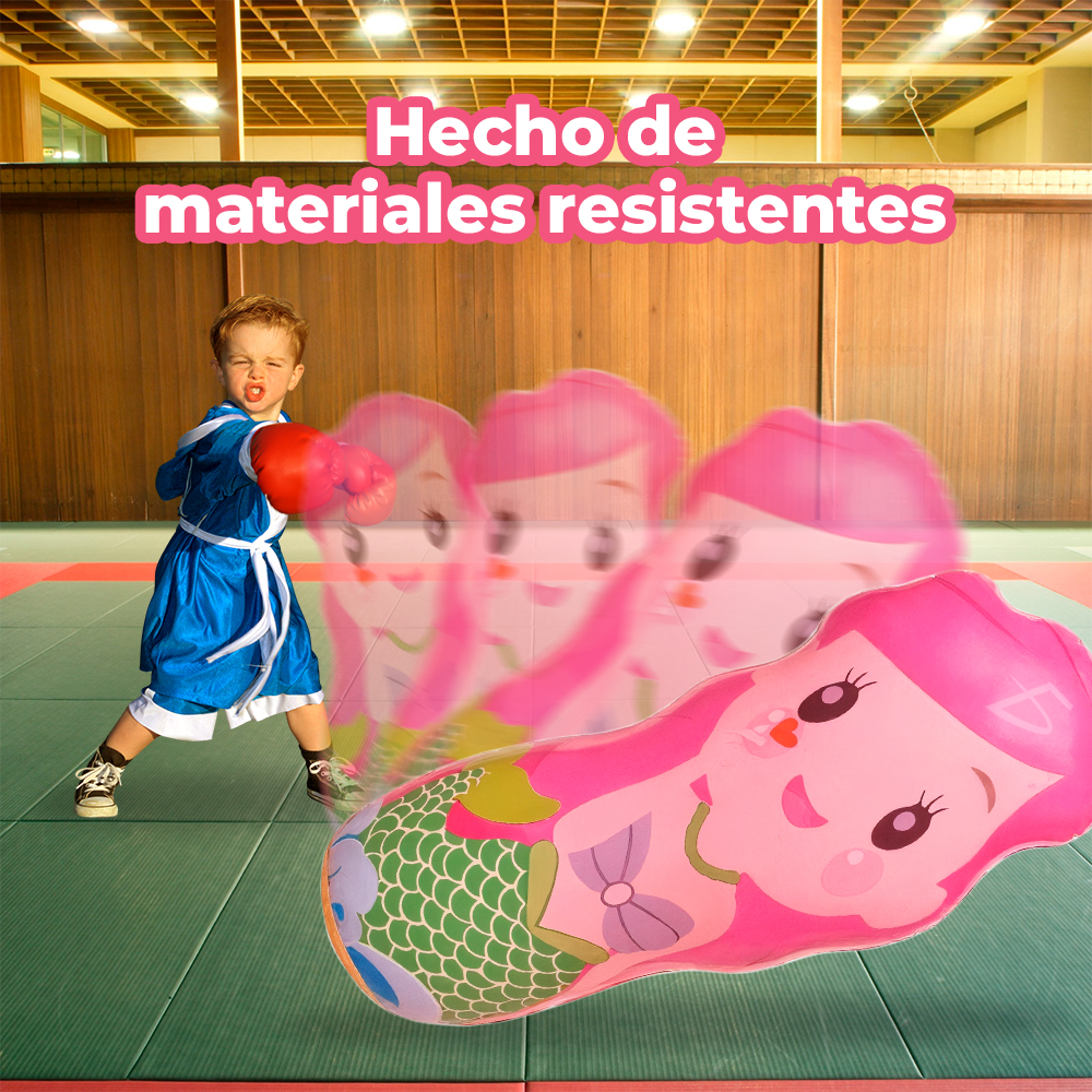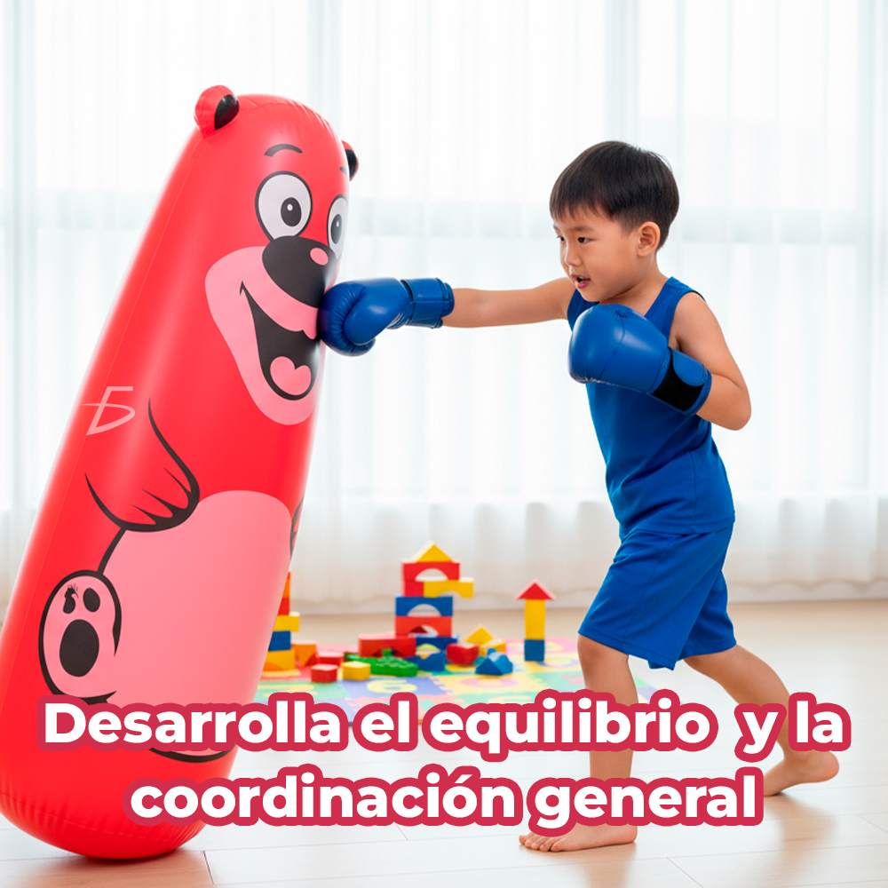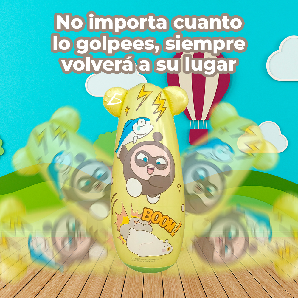 Fácil de inflar y almacenar, este punching bag infantil se convierte en el compañero perfecto para mejorar la coordinación, la fuerza y la concentración, promoviendo un estilo de vida activo mientras se divierten.