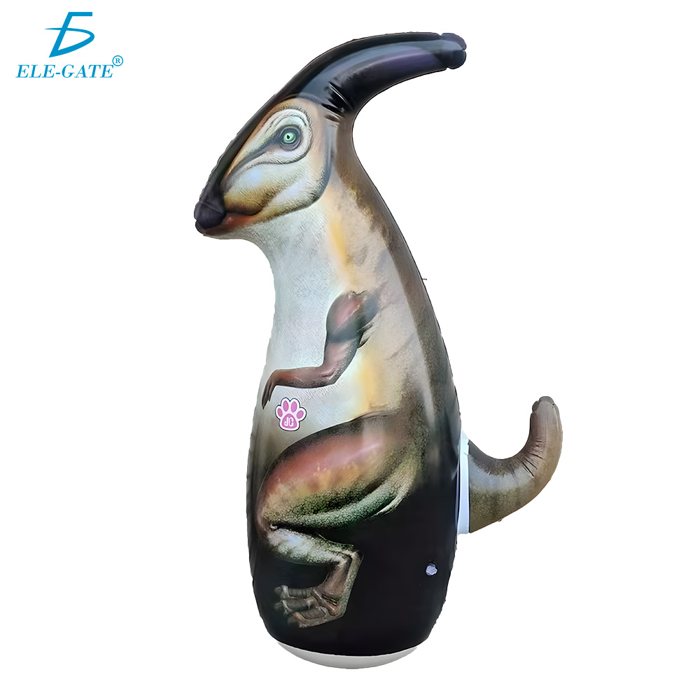 Fabricado con polímero resistente y flexible, este saco de box inflable soporta uso constante, ideal para jugar tanto en interiores como en exteriores.