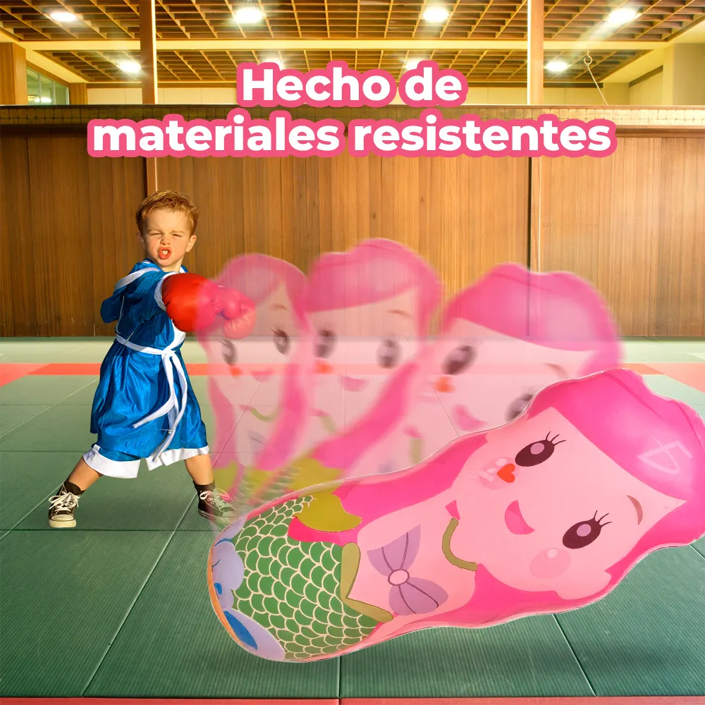Fácil de inflar y almacenar, este punching bag infantil se convierte en el compañero perfecto para mejorar la coordinación, la fuerza y la concentración, promoviendo un estilo de vida activo mientras se divierten.