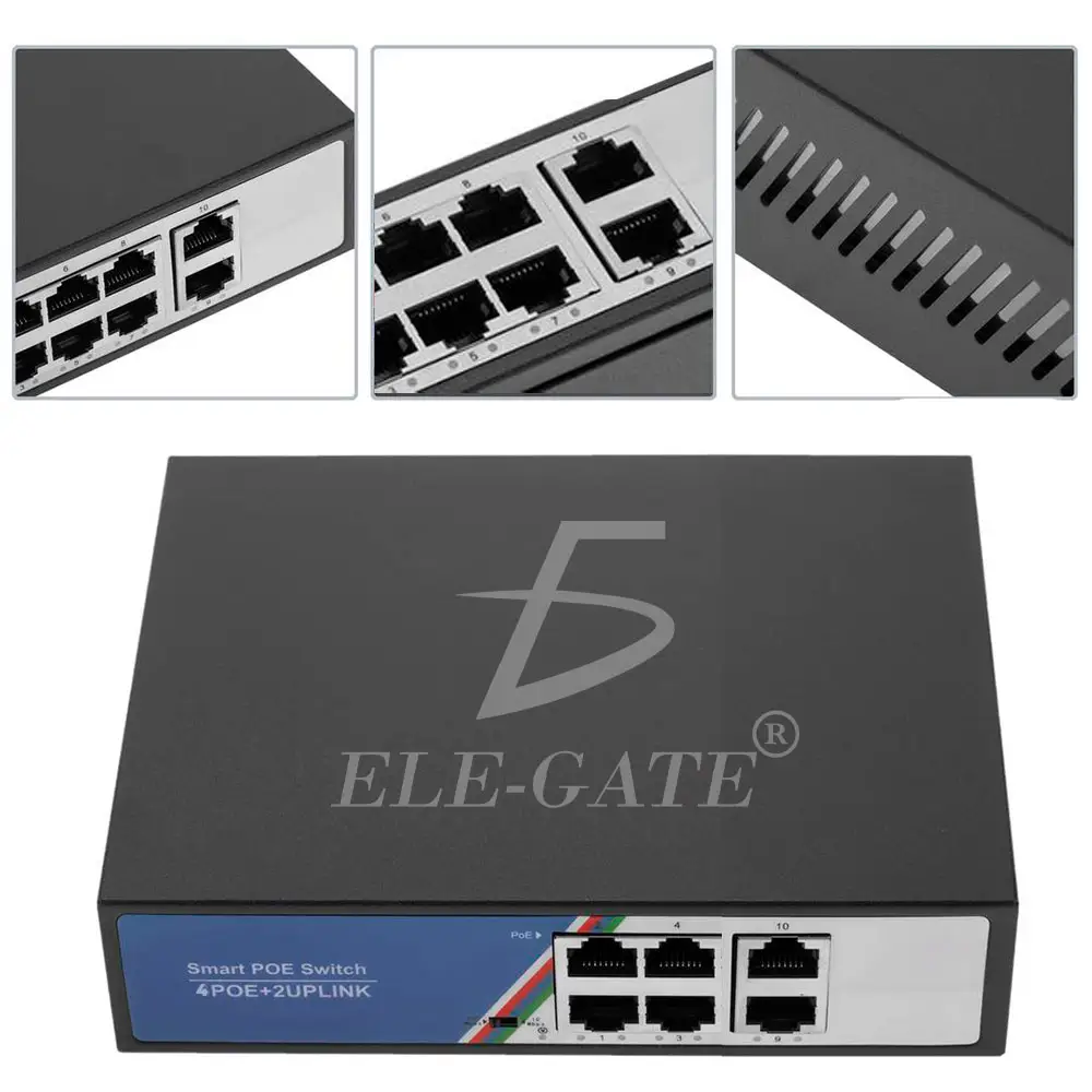 - Interruptor PoE+ de 6 puertos: 4 puertos PoE+ de 10/100 Mbps (802.3 at/af) y 2 puertos ascendentes de 10/100 Mbps, presupuesto de energía de hasta 30 W por puerto PoE y 65 W para todo el mundo.