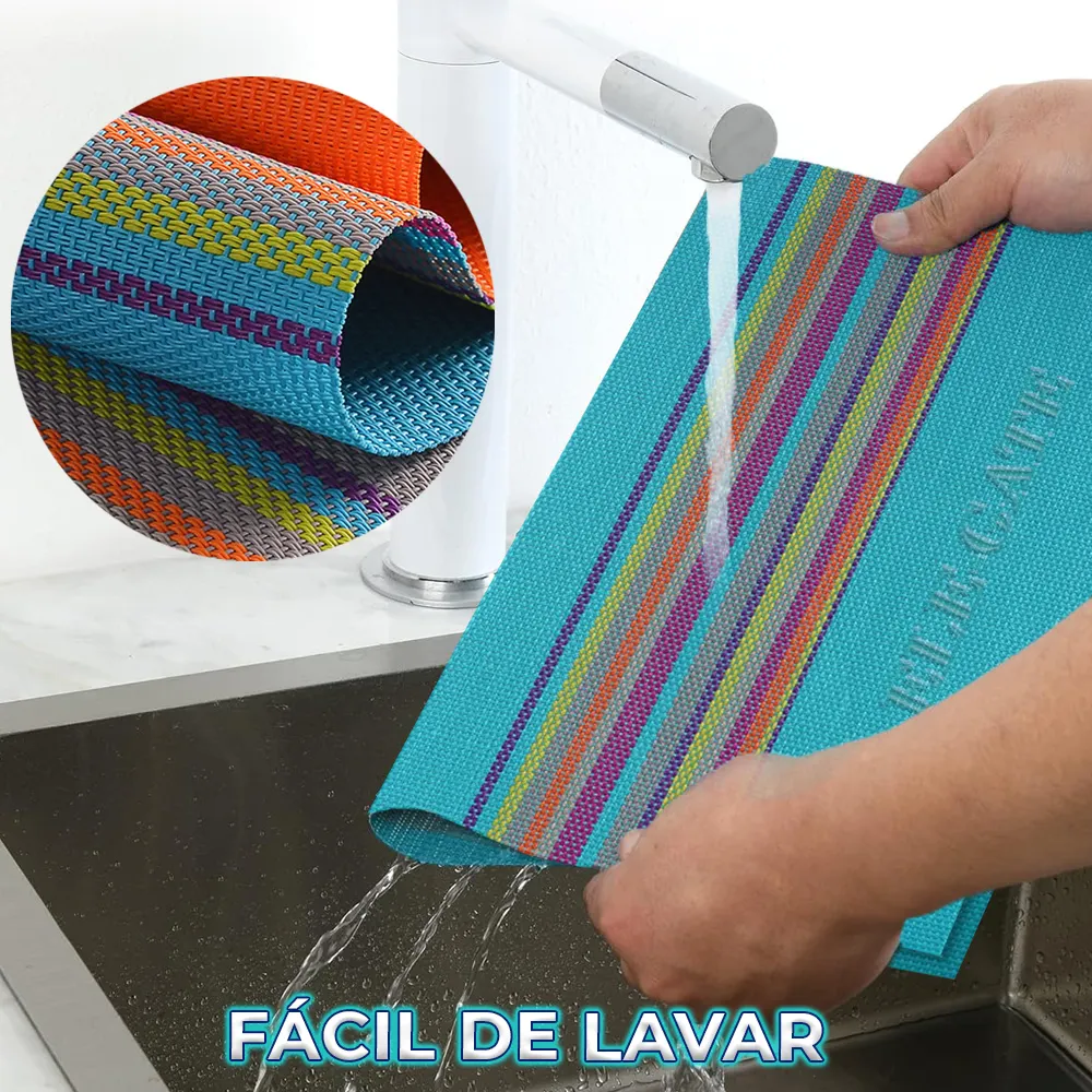 Agrega un toque de color y estilo a tu mesa con este práctico y elegante set de manteles individuales. Ideal para realzar el ambiente de tu comedor o sala de estar.