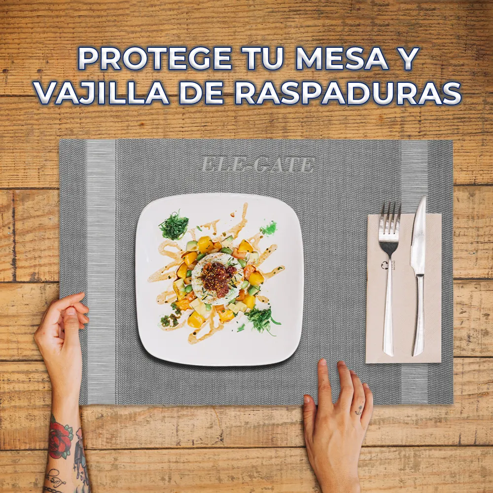 • Aislamiento Antideslizante: La superficie antideslizante asegura que los manteles permanezcan en su lugar, evitando deslizamientos y proporcionando una base estable para platos y cubiertos.