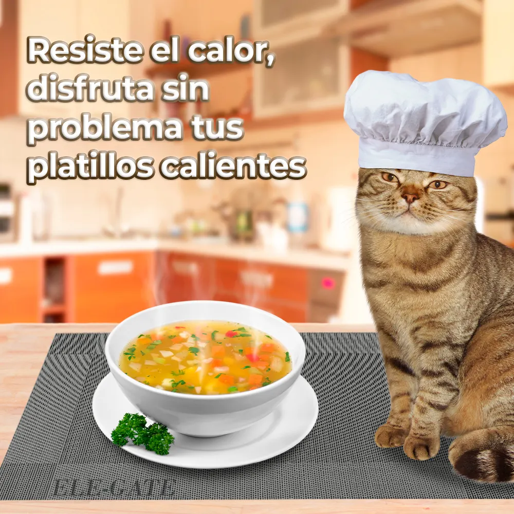 - Aislamiento Antideslizante: La superficie antideslizante asegura que los manteles permanezcan en su lugar, evitando deslizamientos y proporcionando una base estable para platos y cubiertos.