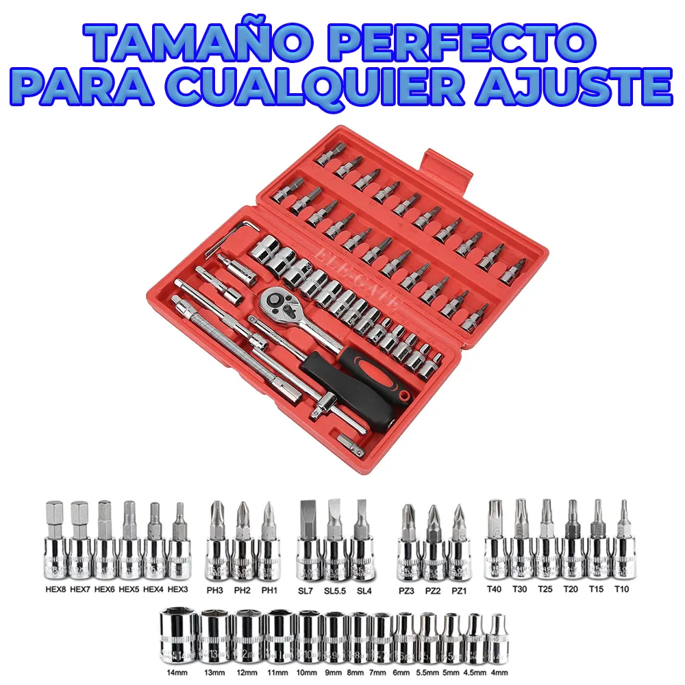- Juego de 46 herramientas mecánicas de 1/4 pulgadas.
