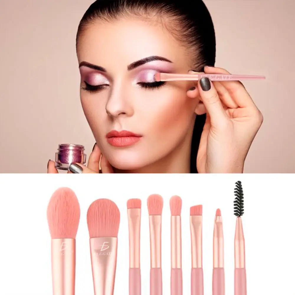 Juego de 8 Brochas de Maquillaje Profesionales para Cosméticos con Bolsa de Maquillaje (Rosa Coral)