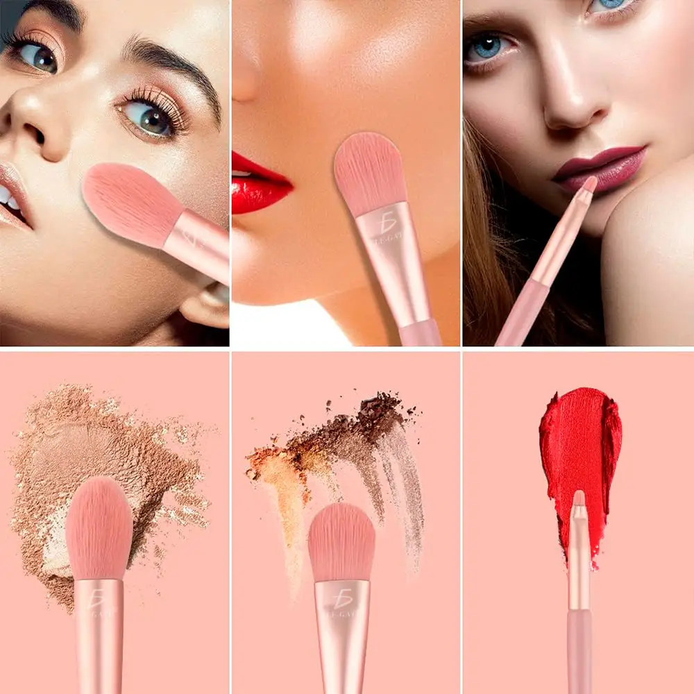- Incluye brochas para rubor, base, sombra de ojos, cejas, pestañas, labios y polvo.