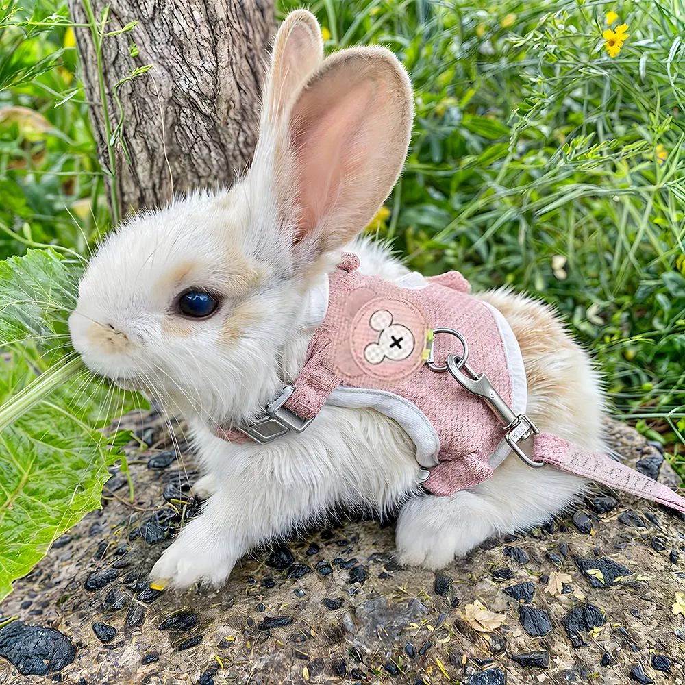 Juego de Correa con Pechera para gato pequeño, conejo, cuyo, o zarigüeya con Detalle de Oso Kawaii colores pastel y textura reforzada para evitar que se rompan