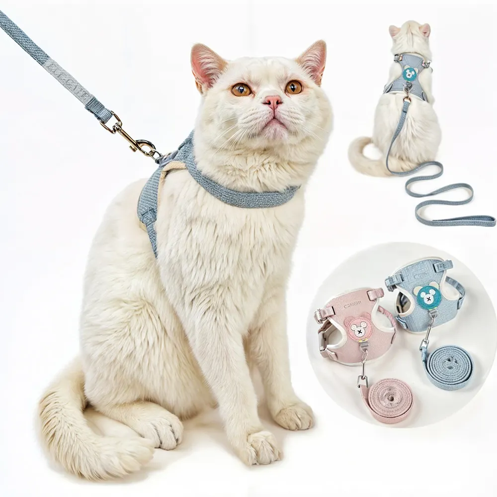 El juego de correa con pechera para gato pequeño, conejo, cuyo o zarigüeya con detalle de oso kawaii ofrece una manera adorable y segura de pasear a tu mascota. Con colores pastel y un diseño de oso kawaii, es tanto práctico como lindo. La textura reforzada garantiza que la correa y la pechera sean duraderas y resistentes, lo que ayuda a prevenir roturas durante el uso. Este conjunto proporciona una experiencia de paseo cómoda y segura para tu mascota pequeña, permitiéndote disfrutar de momentos agradables al aire libre juntos.