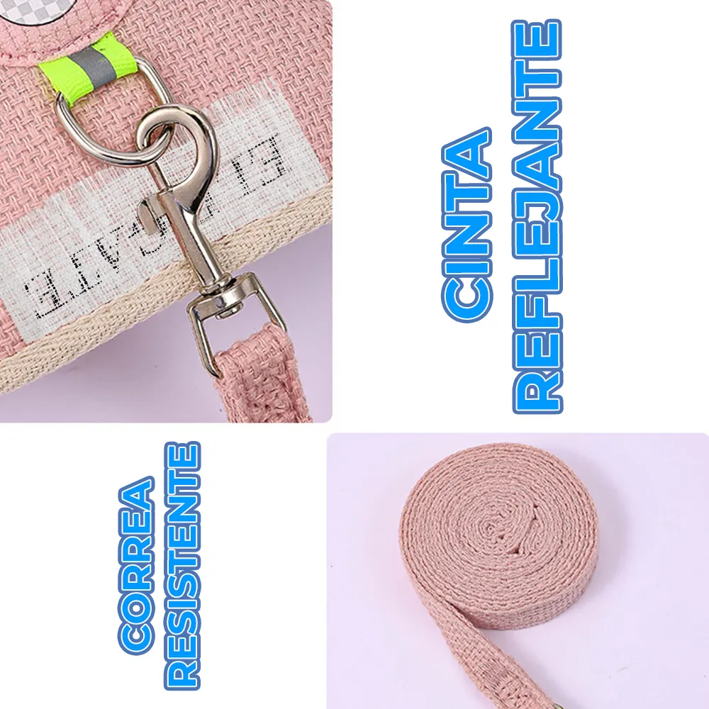 - Seguridad: La correa y la pechera están diseñadas para proporcionar un paseo seguro, con materiales que no causan irritación en la piel de tu mascota.