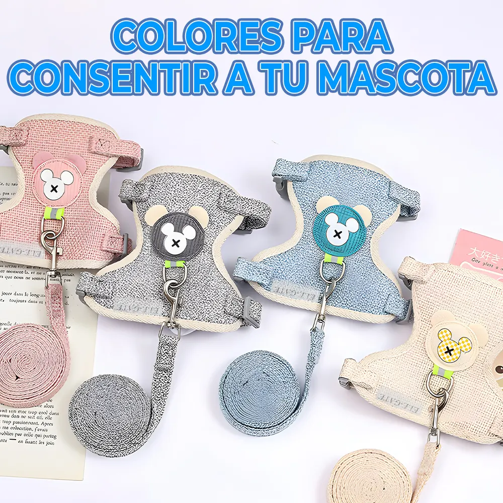 - Diseño adorable: Presenta un diseño de oso kawaii y colores pastel que hacen que tu mascota luzca aún más linda durante los paseos.