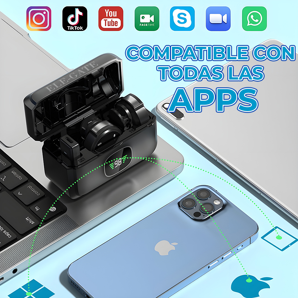 Lleva tu contenido al siguiente nivel con este set de micrófonos lavalier inalámbricos duales. Su sistema 2.4 GHz ofrece audio claro, baja latencia y conexión inmediata; perfecto para entrevistas, clases online, vlogs y directos.