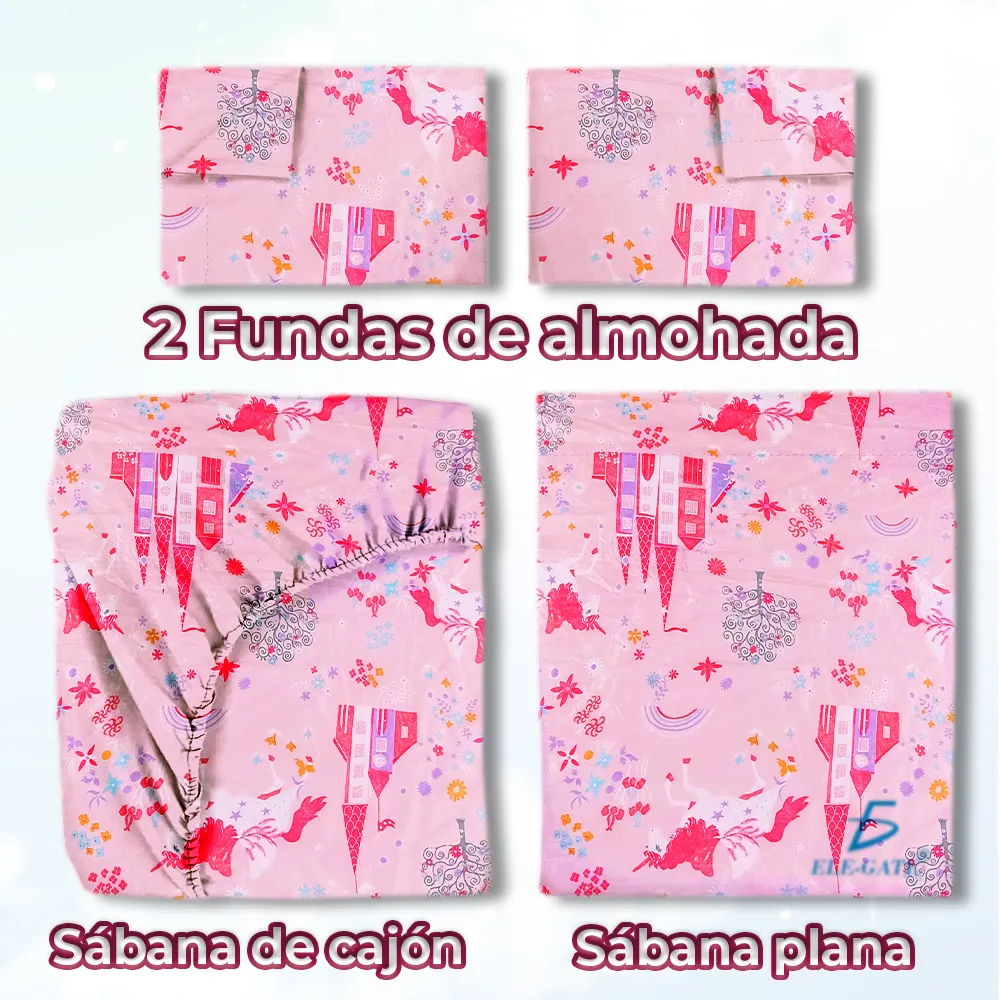 - Diseño Elegante y Funcional: El juego incluye una sábana cajonera, una sábana plana y dos fundas de almohada, proporcionando una apariencia armoniosa y bien coordinada para tu cama.