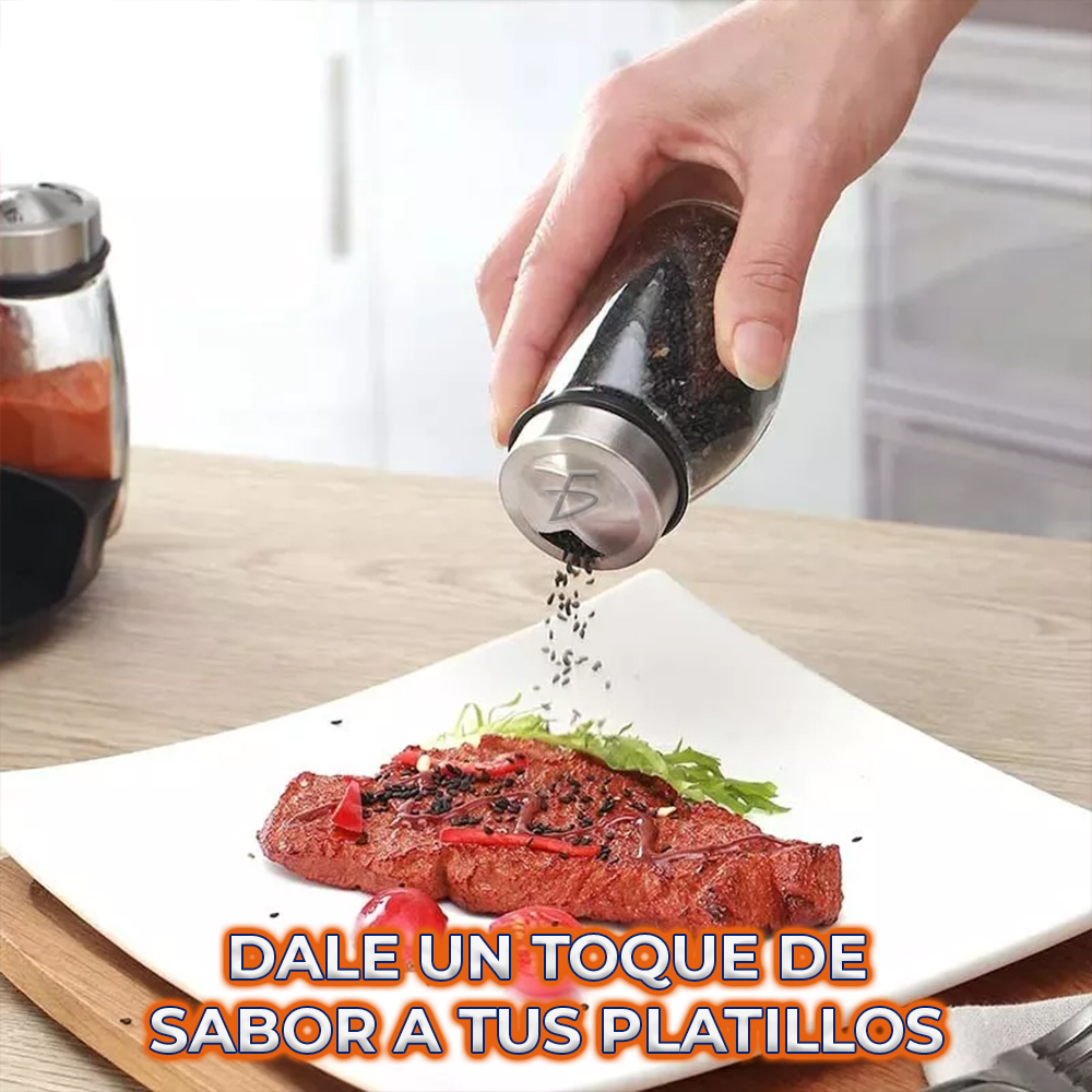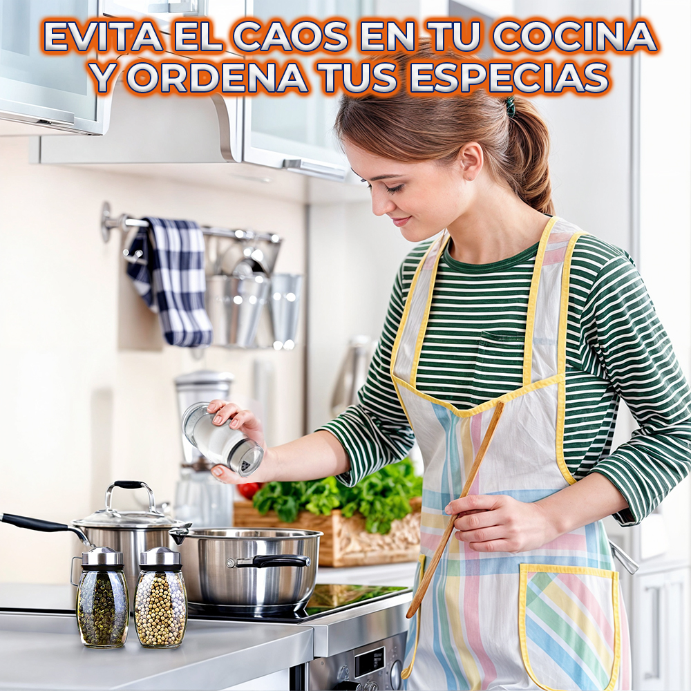 - Juego de 6 Piezas: Incluye seis recipientes para diferentes especias, lo que te permite tener una variedad de condimentos listos para usar.