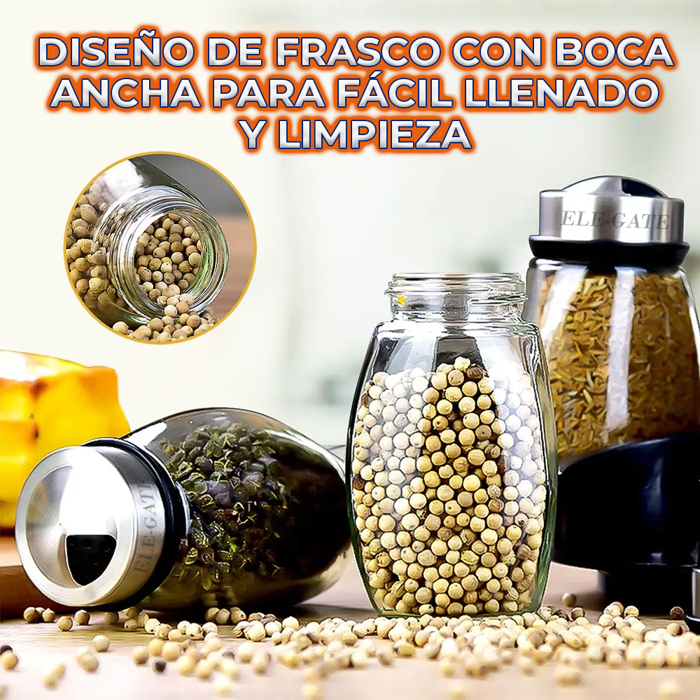 - Tapa Hermética: Las tapas herméticas mantienen tus especias frescas y secas, evitando la humedad y preservando el sabor.