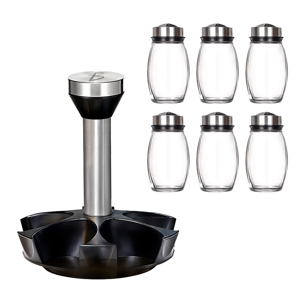 - Diseño Giratorio 360°: El soporte giratorio permite acceder fácilmente a los saleros y pimenteros con solo un giro, ideal para tener todas tus especias a mano.