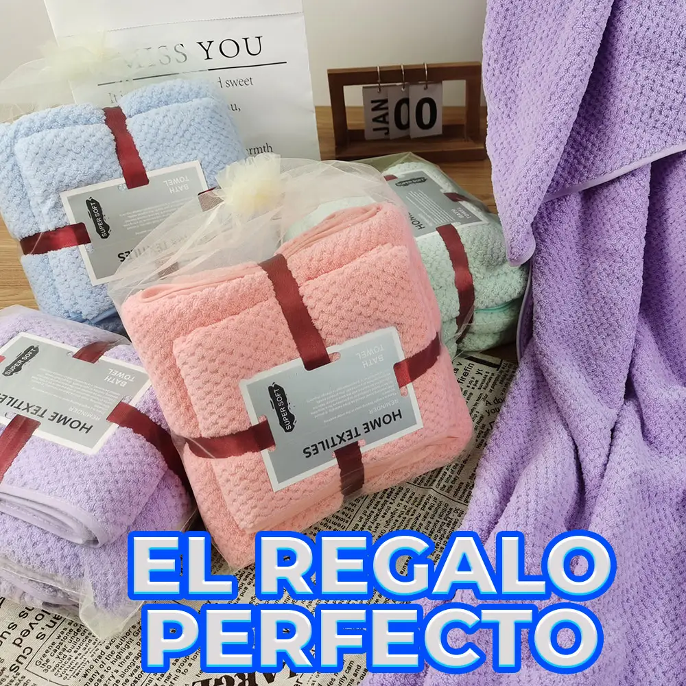 - Incluye: 3 toallas (1 para baño, 2 para manos).