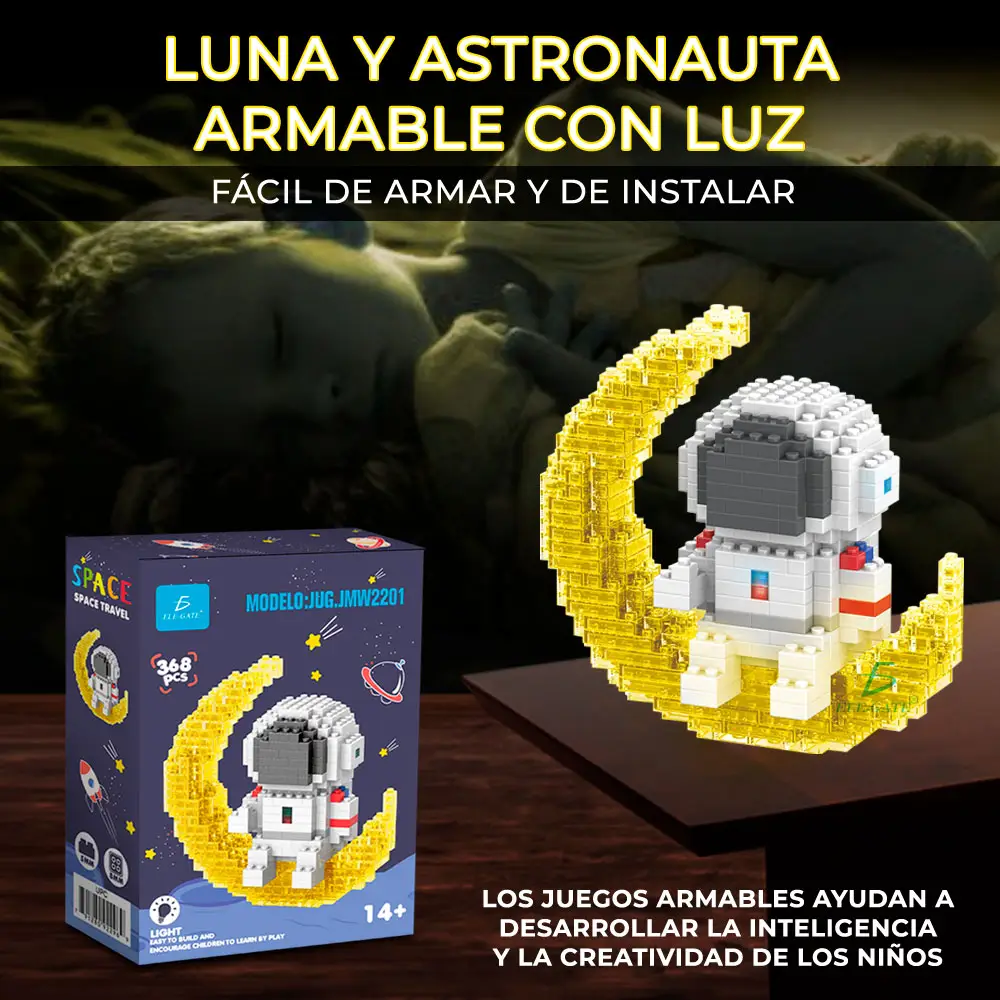 Juguete de Bloques Luna y Astronauta Armable con Luz
